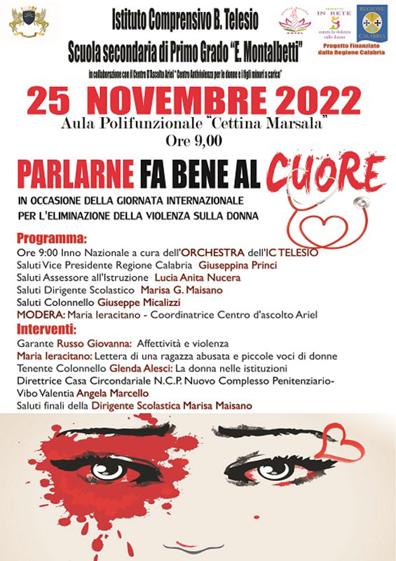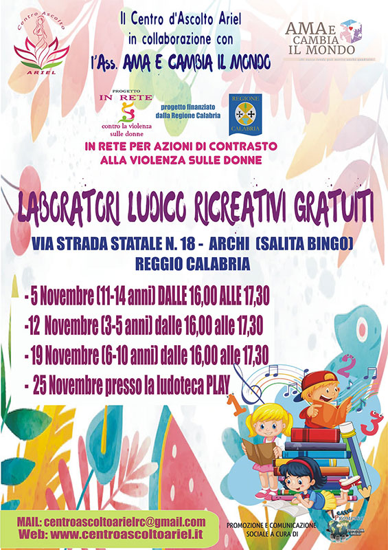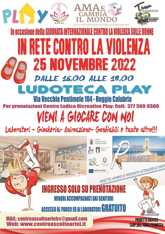 Con il progetto IN RETE CONTRO LA VIOLENZA SULLE DONNE il Centro vuole coinvolgere le scuole di ogni ordine e grado, gli asili, le ludoteche ed i centri di aggregazione del territorio calabrese nella rete di servizi a contrasto della violenza di genere, lavorando con e sui minori (bambini e adolescenti) con l’obiettivo di favorirne la crescita, considerando il “genere” come apprendimento necessario, di sé, degli altri e delle altre. L’Associazione crede infatti che l’educazione al rispetto di sé e la cura delle relazioni tra pari costituiscono le basi sicure per la formazione di nuove generazioni, pronte a costruire una società che promuove una cultura di genere non-sessista e paritaria.